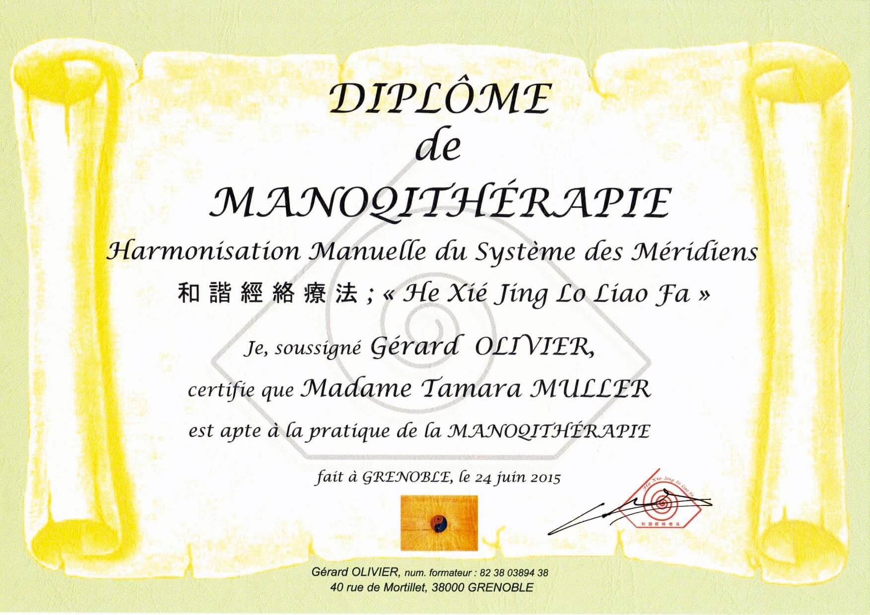 * juin 2015 : diplôme de Manoqithérapie - Gérard OLIVIER (Grenoble)